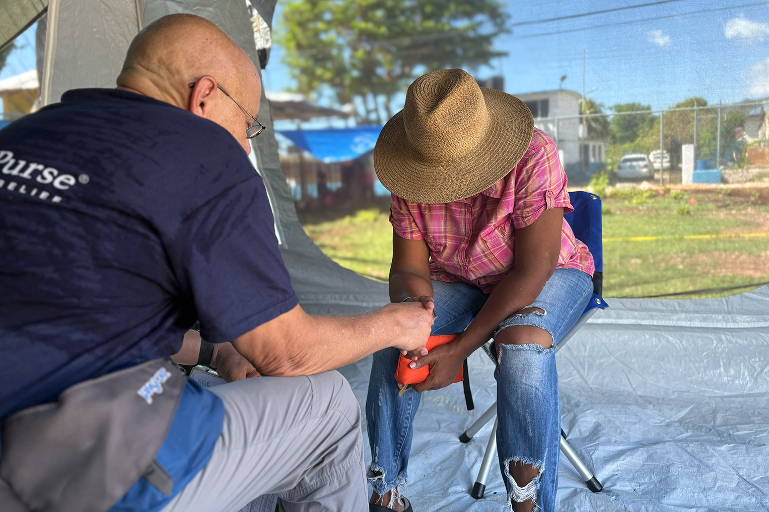 Michelle, a resident of Alligator Pond, was hurting with chest and shoulder pain after clearing debris from her yard and repairing her roof. She praised the Lord when she saw a Samaritan’s Purse tent offering free medical care.