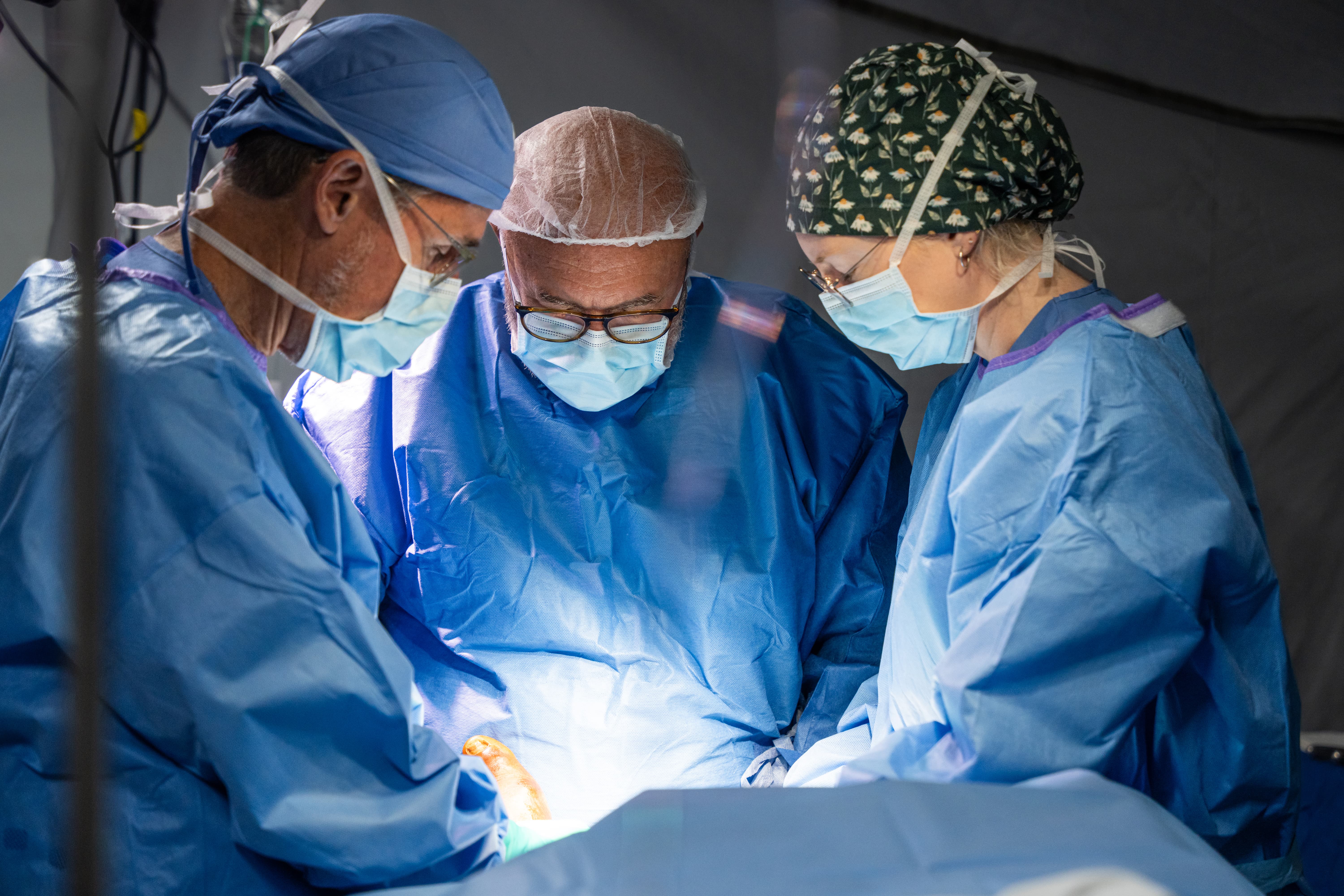 At maximum capacity, the Emergency Field Hospital staff can treat more than 200 patients and perform 15 to 30 surgeries daily—functioning as a full hospital.
