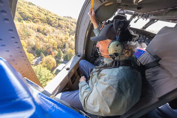 Franklin Graham surveys damage in western North Carolina while onboard a Black Hawk airlift mission transporting critical supplies after Hurricane Helene.