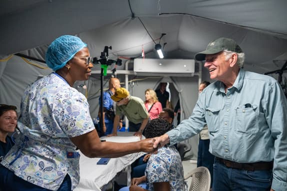 Franklin Graham visits the Samaritan’s Purse Emergency Field Hospital in Black River, Jamaica, after Hurricane Melissa left hundreds of thousands of Jamaicans without access to medical care.