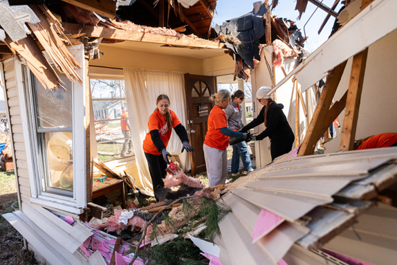 Our teams and volunteers are often among the first to arrive and the last to leave in the wake of devastation caused by tornadoes, hurricanes, floods, and fires.