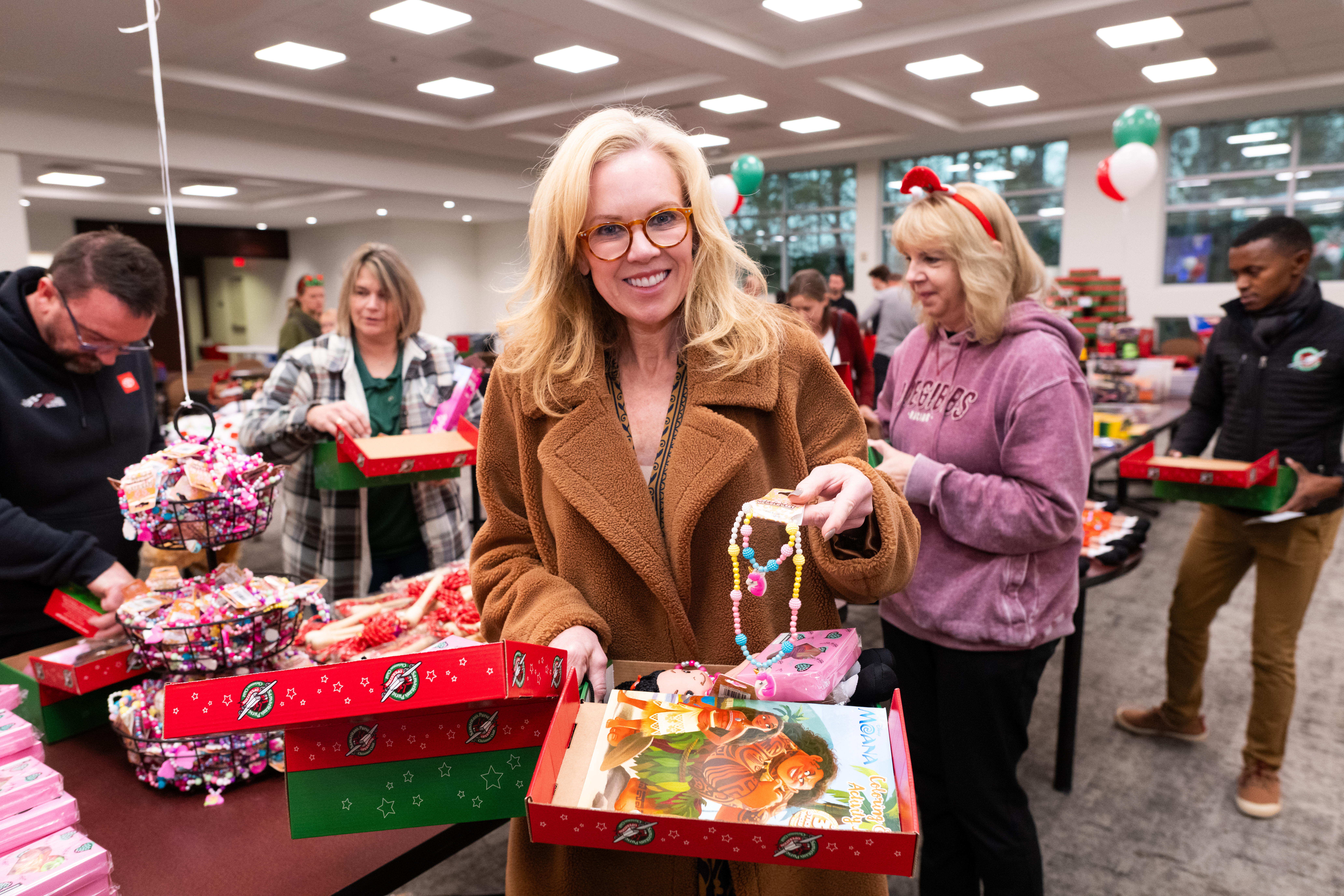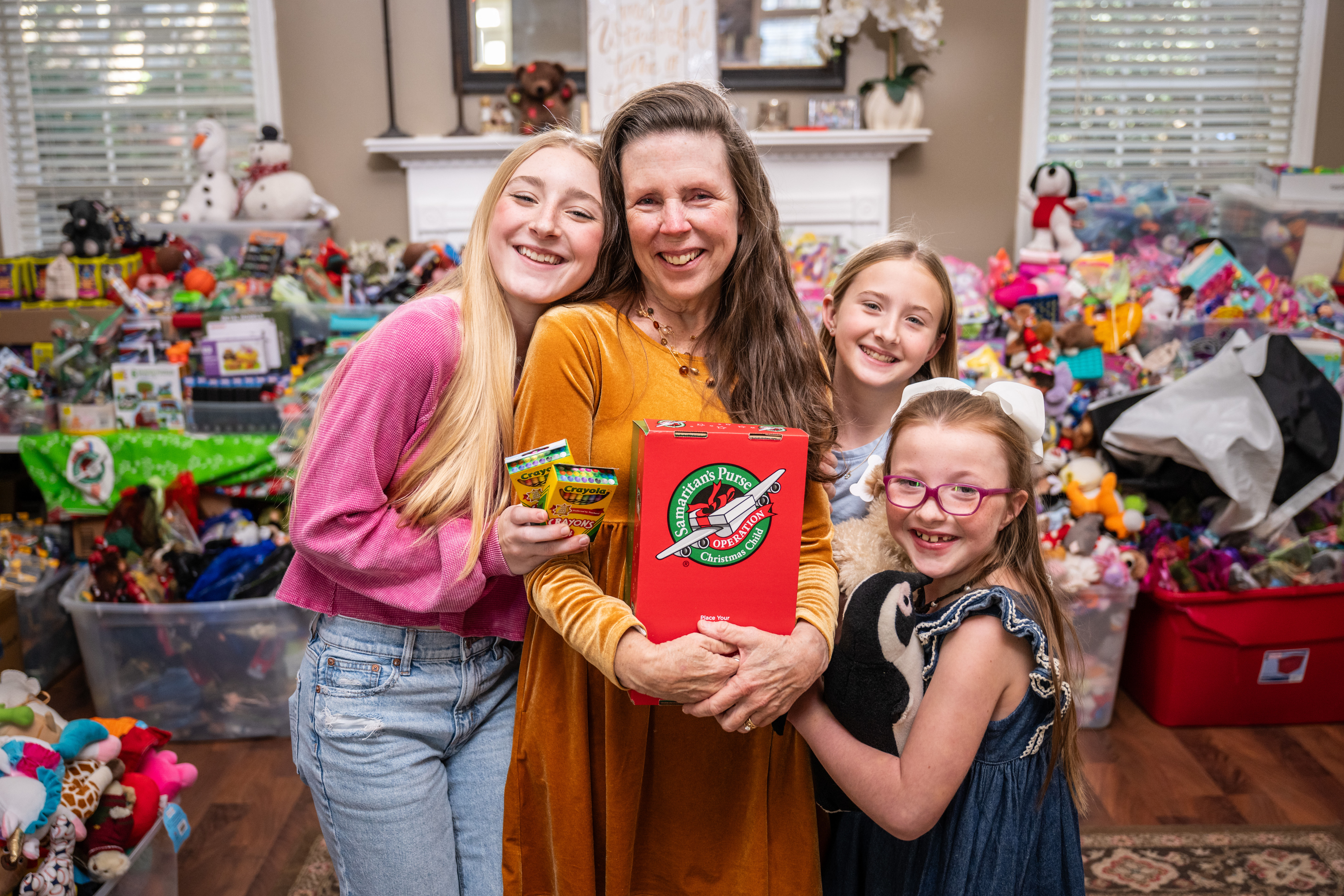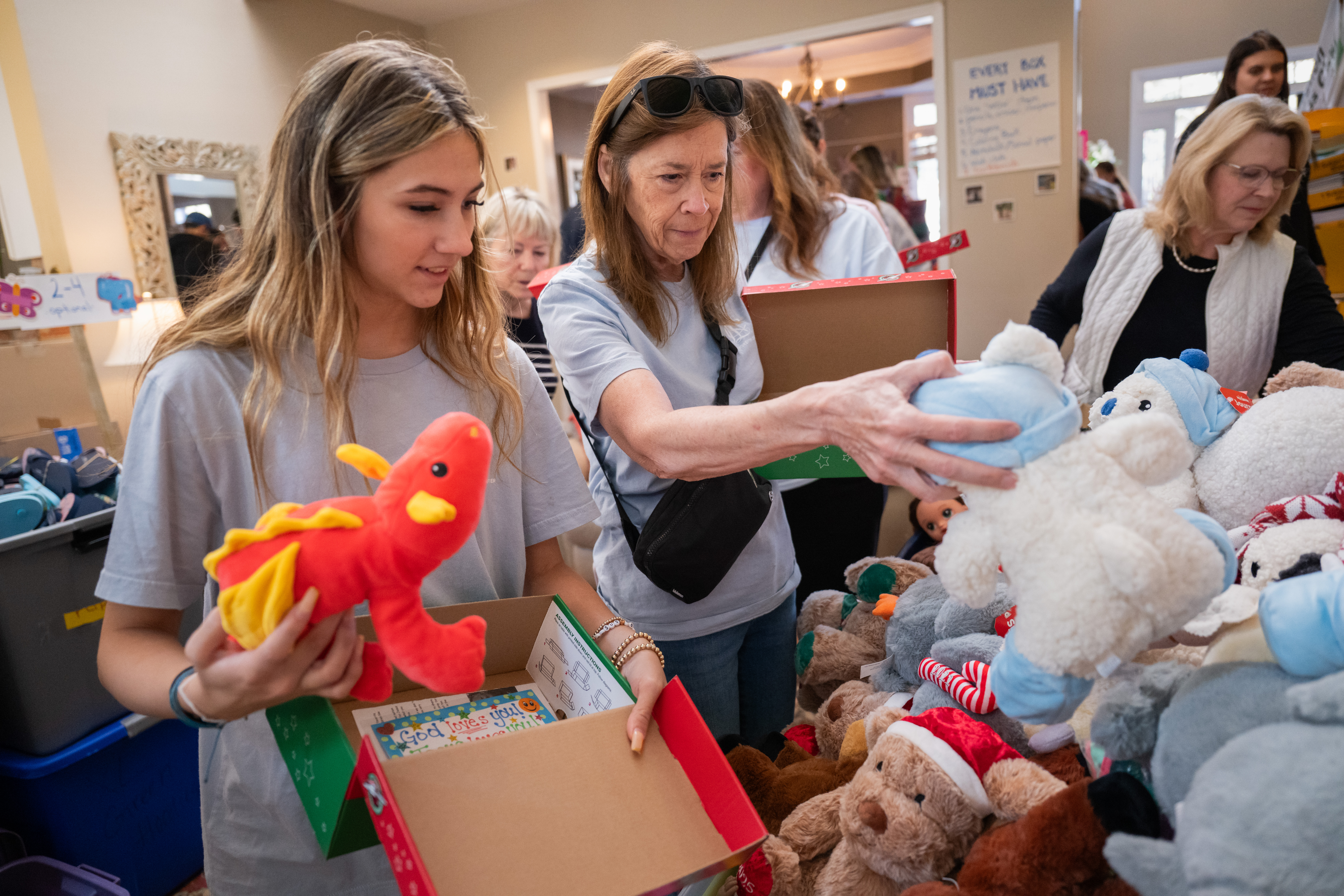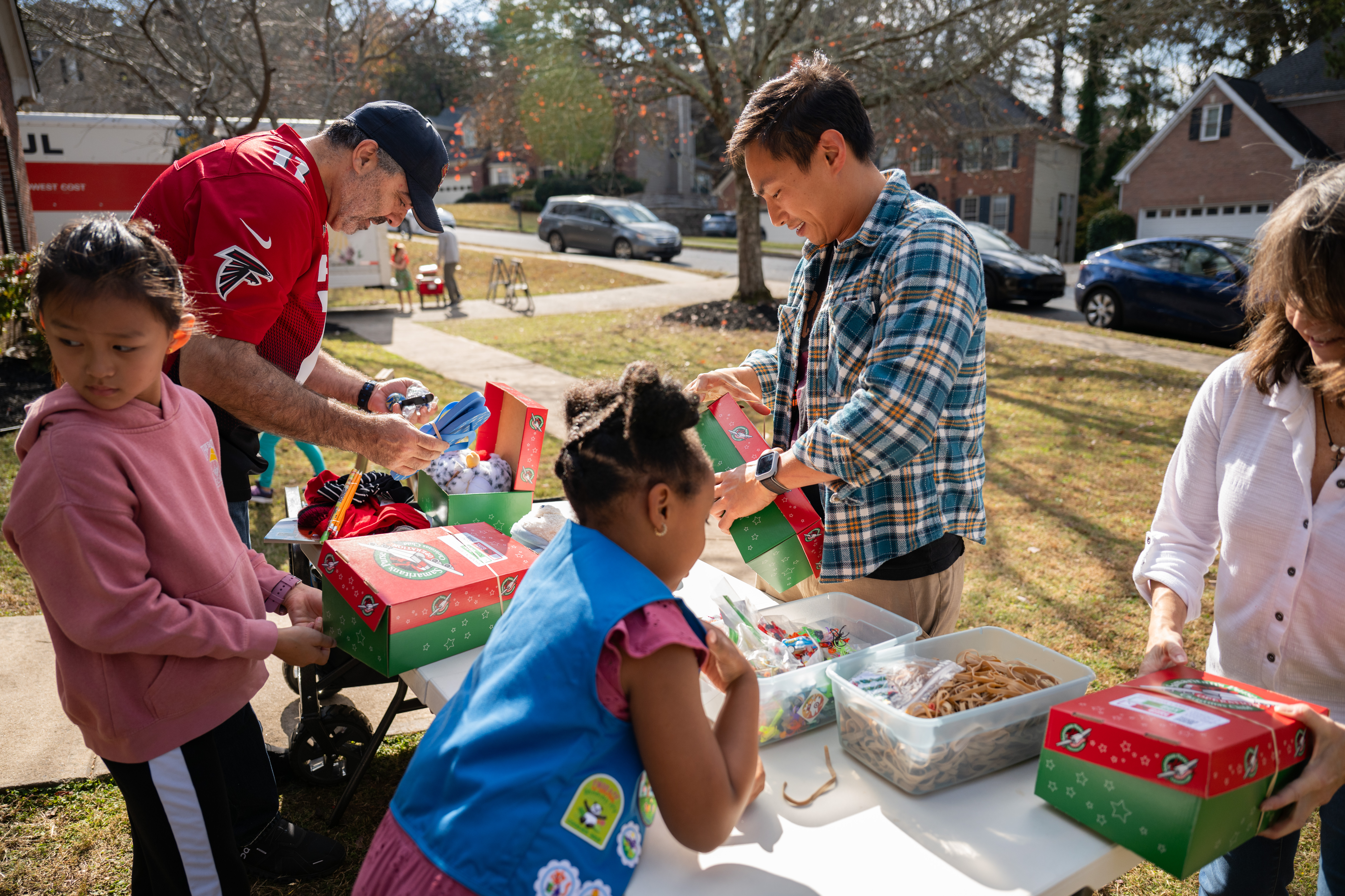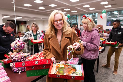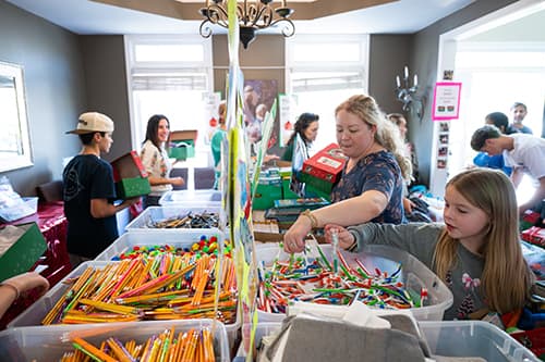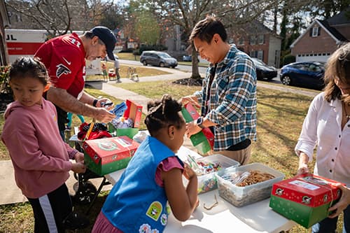 Georgia neighbors and friends gather to pack shoeboxes full of gifts for boys and girls in need.