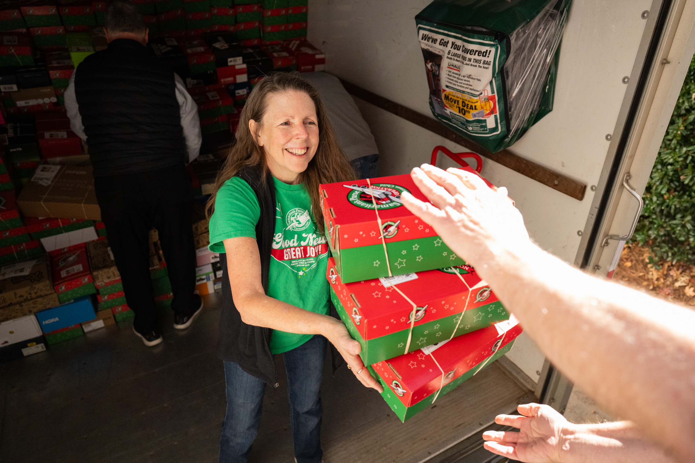 Shoebox packers deliver their prayerfully packed boxes to over 4,500 drop-off locations open across the U.S. the third week of November.
