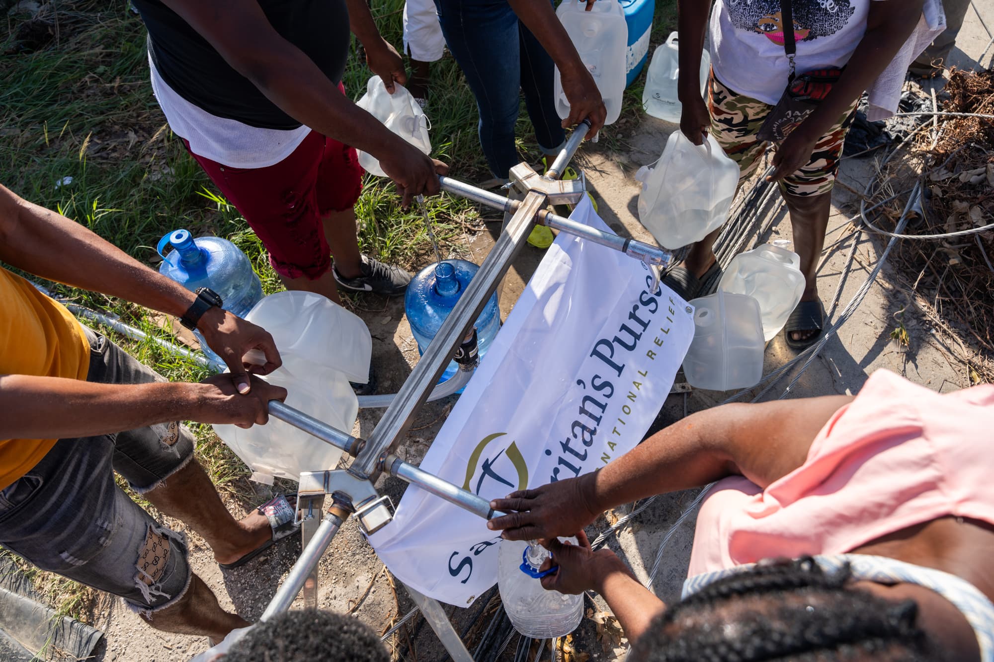 Families in Jamaica receive clean drinking water from a Samaritan’s Purse community filtration system set up after Hurricane Melissa.