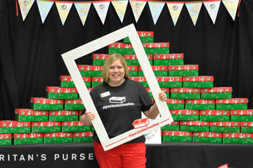 Jill shows her enthusiasm for Operation Christmas Child.