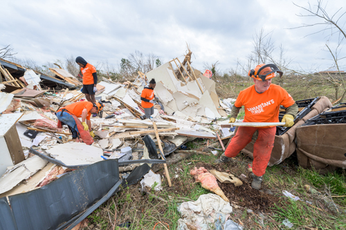 Rolling Fork, Mississippi: March 27, 2023Samaritan's Purse volunteers begin their day in prayer as they prepare to serve hurting families after recent tornadoes. Download  -