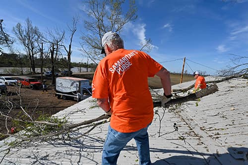 Rolling Fork, Mississippi: March 27, 2023Samaritan’s Purse volunteers are serving in Mississippi by removing debris, clearing downed trees, and tarping damaged roofs. Download  -