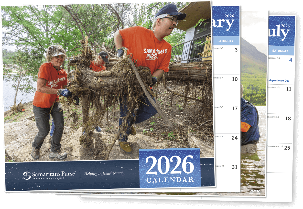 Our beautiful 2026 calendar highlights a different Samaritan's Purse ministry each month and contains a Bible reading plan that will take you through the Scriptures in a year.